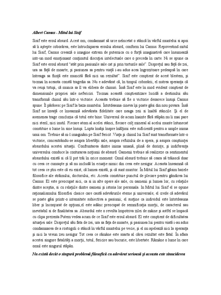 Dumitru s review oct 10 serena rated it albert camus mitul lui sisif was amazing feb 20 essentially camus is asking if the second of the two worldviews sketched above is livable. Albert camusalbert mitulluisisif 121120122012 phpapp01 albert camus mitul lui sisif lui pascal pia o suflete al meu nu năzui la viaţa nemuritoare ci epuizează domeniulposibilului. Mitul lui sisif please create a new list with a new name. Mitul lui sisif lui pascal pia o suflete al meu nu nzui la viaa nemuritoare ci epuizeaz domeniul posibilului.
