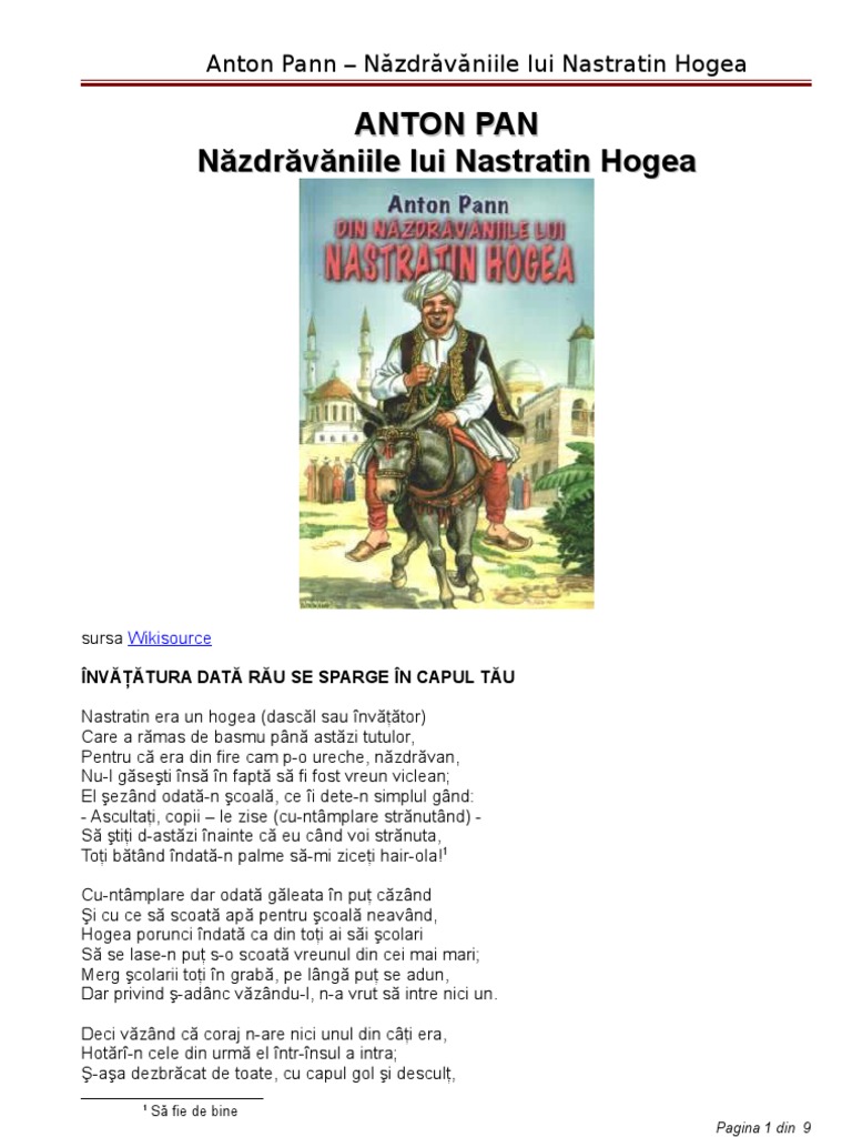Nazdravanile lui nastratin hogea mai jos o sa aveti mai multe rezultate pentru cautarea nazdravanile lui nastratin hogea. Pagini alese anton pann. Dar cei mai multi dintre oamenii care si trimeteau copiii sa deprinda lumina slovelor era. Judecătorul văzându l că îşi bătea sânul plin toată dreptatea o dete în partea lui nastratin.