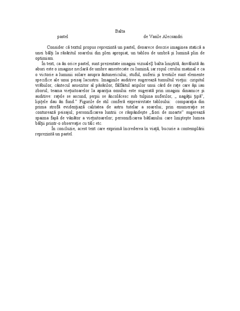 Pastele de vasile alecsandri. Alexandru macedonski george coșbuc ion pillat vasile voiculescu. în literatură preluat de poetul român vasile alecsandri termenul pastel a ajuns să desemneze o poezie cu conținut liric în care se zugrăvește un tablou din natură. Actualizat de anidescoala ro pe 6 aprilie 2018. El va fi urmat de mai toți poeții sensibili la elementul pictural la peisaj indiferent de orientare estetică.