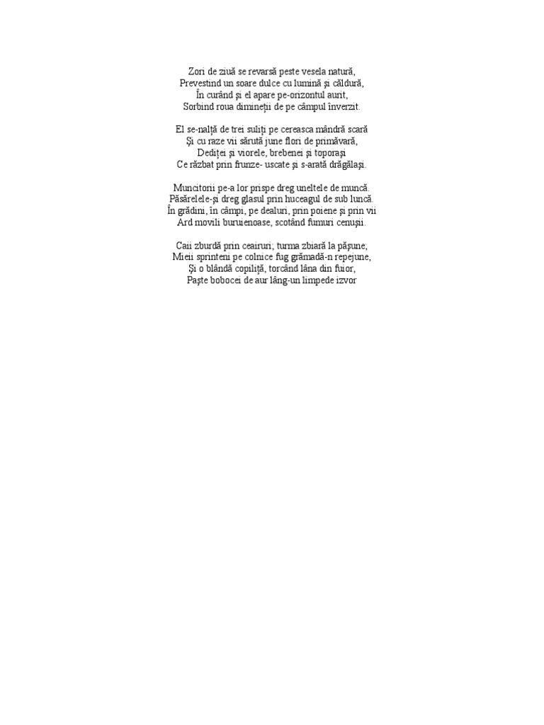 De pasti in satul vesel casutele nalbite lucesc sub a lor malduri de trestii aurite pe care cocostarcii infipti intr un picior dau gatul peste aripi tocand din ciocul lor. Like 87 dislike 2 de paşti în satul vesel căsuţele nălbite lucesc sub a lor malduri de trestii aurite pe care cocostârcii înfipţi într un picior. Creatorul acestei specii literare în literatura română este vasile alecsandri poezia bărăganul este un pastel pentru că are caracteristicile acestui tip de text. De vasile alecsandri vasile alecsandri 2006 04 01 înscris în bibliotecă de luiza oana grosu.