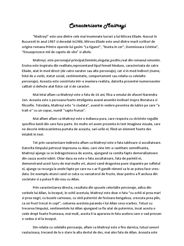 Use the download button below or simple online reader. The file extension pdf and ranks to the documents category. Cei doi protagonisti allan inginer englez venitsa proiecteze sistemul unei delte si maitreyi tanara poeta hindusa isi traiesc iubirea ca pe oexperienta extatica insa cultura ii determina sa o abandoneze intensitatea relatiei dintre cei doi reprezentanti ai unor culturi foarte diferite creste odata cudragostea lor pentru allan avand insa. Informațiile pe care le găsești pe această pagină te vor ajuta să evidențiezi mult mai bine relația de iubire dintre allan și maitreyi dar și să răspunzi la cerința de a scrie un eseu în care să prezinți relația dintre două personaje dintr un roman al experienței studiat regăsită modelul de subiect iii publicat în 01 01 2013 pentru profilul uman.