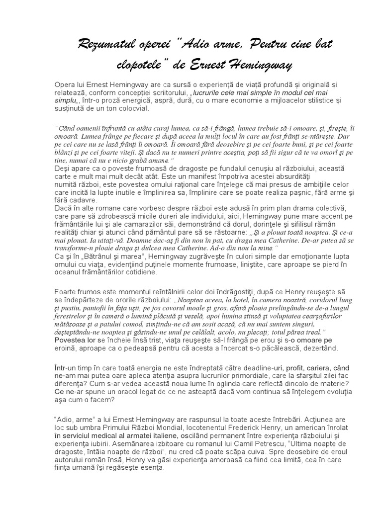 Rezumat batranul si marea. Este o poveste a unui pescar batranul santiago ce nu are noroc in ultima perioada in meseria sa se imprieteneste cu un tanar dar lipsa succesului batranului ii determina pe parintii baiatului sa l trimita la altcineva sa munceasca. Cumpără acces log in. Este o poveste a unui pescar batranul santiago ce nu are noroc in ultima perioada in meseria sa se imprieteneste cu un tanar dar lipsa succesului batranului ii determina pe parintii baiatului sa l trimita la altcineva sa munceasca. Nu ai reușit încă să citești microromanul bătrânul și marea de ernest hemingway.